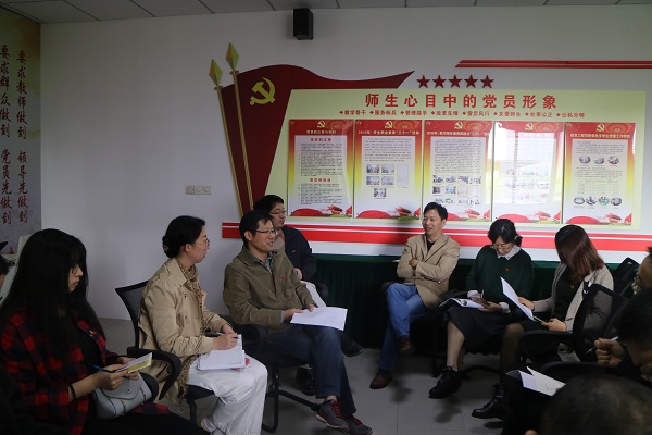 党员老师们说:“党的十九大的召开,必将使我国进入全面开创中国特色社会主义事业新局面的崭新阶段。作为教育工作者,我们要发扬光荣传统、弘扬时代精神、牢记使命、扎实工作,拥护从严治党,为我国的全面进步和发展谱写新篇章、做出新贡献。”、“通过聆听报告,我们感到振奋人心,中国共产党带领全国人民在国防、民生、科技等方面取得了举世瞩目的成就,虽然国家在发展过程中还会遇到许多困难,但我国已经走出了一条有中国特色的发展道路,在党的领导下,我们对社会发展和国家前途充满了希望和期盼、我们的道路一定可以越走越好。”、“身为一名光荣的共产党员,要永远牢记初心,永远与人民同呼吸,共命运,与人民心连心,把人民对美好生活的向往作为奋斗目标。在工作中更要不懈怠,以一往无前的奋斗姿态,全心全意的为学生服务,为教师服务,为学校发展贡献力量。”