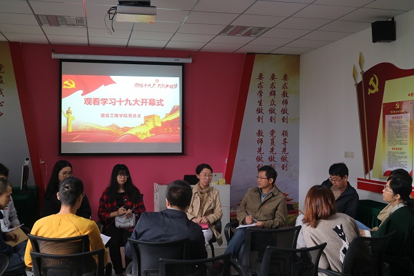 10月18日,中国共产党第十九次全国代表大会胜利召开。信息工程学院党总支在党员之家组织师生党员集中观看学习十九大开幕式的现场直播。