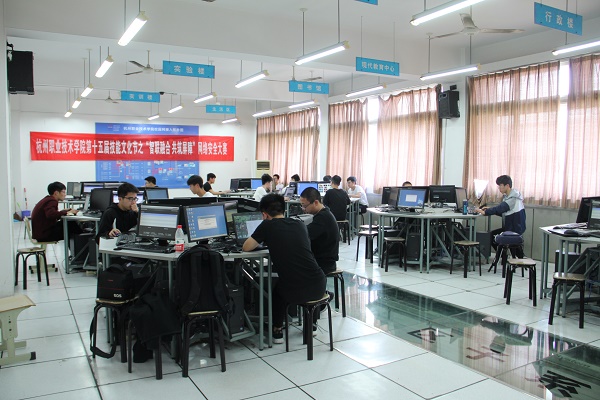 4月20日下午两点,校十五届技能文化节之“智联融合,共筑屏障”网络安全大赛在一号实训楼拉开序幕,本次大赛由网络技术协会承办,由信息安全专业教师担任大赛评委。