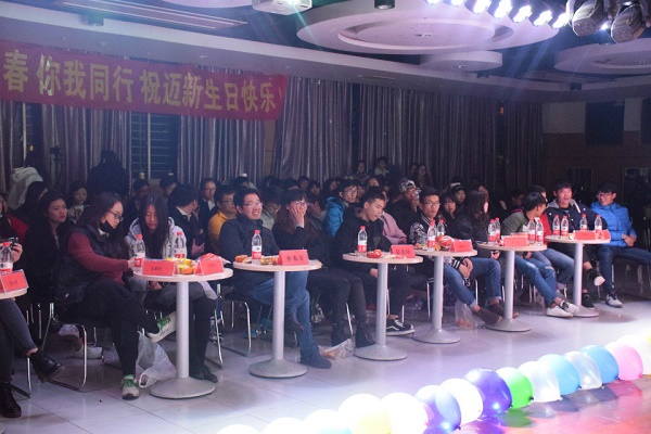 晚会开始之前干事们很早就赶赴108为晚上的节目做准备工作。虽然会有汗水,但大家的脸上都洋溢着开心的笑容!在指导老师的开场致辞后,干事们在舞台上展示着他们这一个多月来的成果,舞台下掌声阵阵,表达了他们对节目的喜爱,在观看节目的同时迈新社还为大家准备的抽奖环节和小游戏,为晚会增加了新的亮点,大家积极参与,乐在其中!最后由社团指导老师邬老师为大家切蛋糕,大家齐祝迈新社十周年生日快乐!