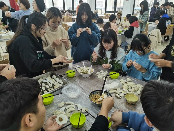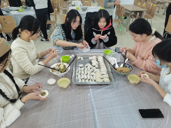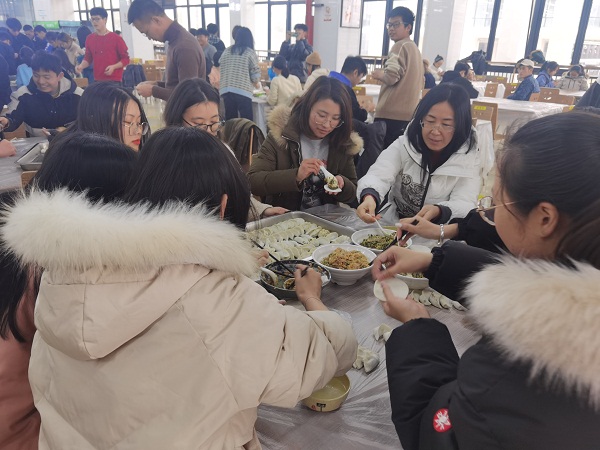 活动于下午两点半准时开始,老师和同学们撸起衣袖、动手实践,心灵手巧的他们展现了各地不同风俗的饺子式样,尽管也不乏冒出奇形怪状的饺子,但都是每位同学亲手创作的成果,现场笑声不断,师生合作其乐融融。在食堂工作人员的助力下,一碗碗热气腾腾的饺子被端上了餐桌,吃着自己亲手包的香喷喷的饺子,大家都感受到了劳动的快乐和集体的温暖。