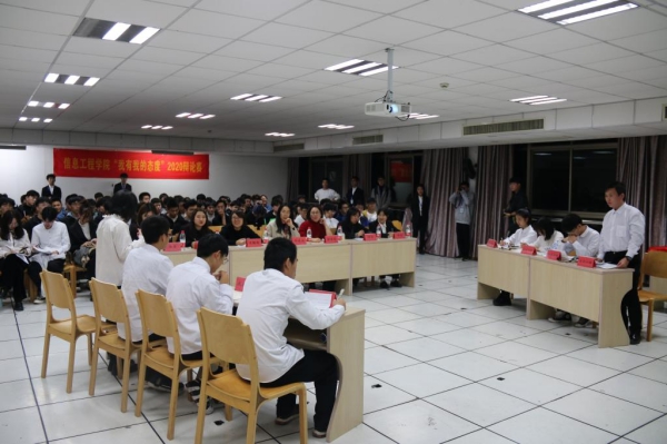 为了锻炼和加强大学生的逻辑能力和思辩能力,信工院坚持每年开展“我有我态度”专业组辩论赛。经过前期6场激烈的积分战,11月30日晚,迎来了最为精彩的半决赛和决赛。团总支负责人王璐瑜、辅导员邬亚培、邓晓南参加活动,校辩论队魏玥洁和王佳佳担任评委。