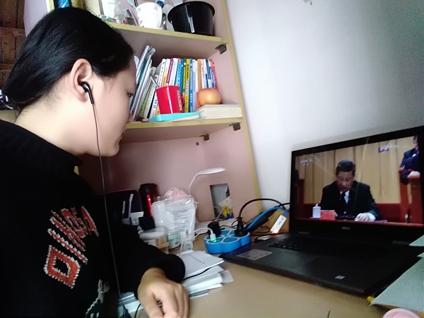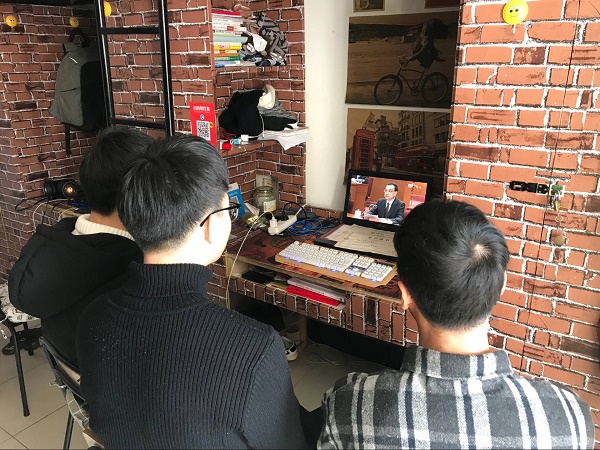 在学生寝室里,信工院的同学们也早早做好了准备,用手机、笔记本等收看庆祝改革开放40周年大会直播。