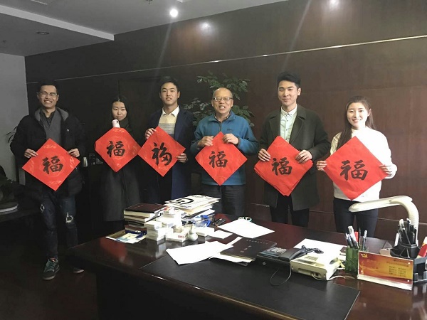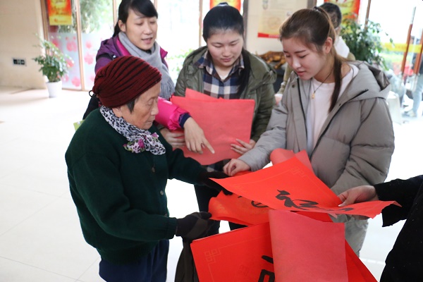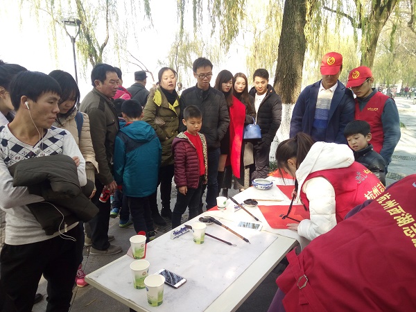 点指青墨红纸间,丹朱奋笔书,鸿福到万家。书画社成员和“小红帽”们一路“福”力全开来到了福利院带给老人们关爱与祝福。一眨眼,小分队的身影又来到了西湖微笑亭,社员们现场的书写似乎更加受到杭州市民的青睐呢。社区里热爱广场舞的大妈们也很是欢喜我们的活动,还纷纷叫上街坊邻里过来领“福”。当然还剩我们的重头戏啦,冬至送福,意义非凡,校领导还有杭职的同学我们可都是传递了浓浓的“福”意,尤其安书记对我们的社团的鼓励与赞赏更是另我们兴奋不已。