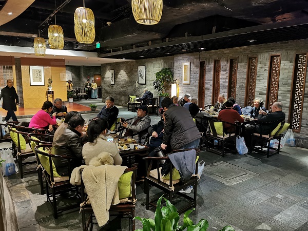 活动当天,暖阳熏人,老教师们一行乘车来到了青藤茶馆,泡上一杯浓浓醇香的西湖龙井,品尝各色味美的小点心,回忆当年的执鞭岁月,聊聊学校的快速发展,感恩现在美好的生活,分享各自退休后的悠闲日子,有说有笑,其乐融融。