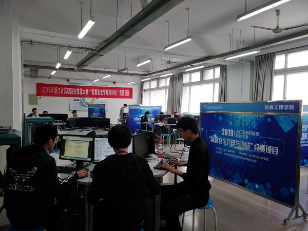 3月30日,2019年浙江省高职院校技能大赛 “信息安全管理与评估”竞赛项目在信息工程学院举行。本次大赛由浙江省教育厅主办,我校承办,北京神州数码云科信息技术有限公司协办。全省共有11个高职院校21支队伍参加比赛。