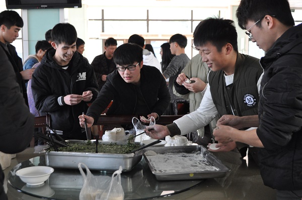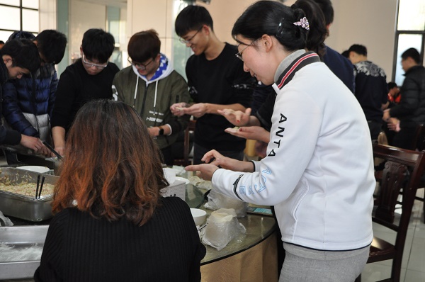 活动现场大家密切分工,团结合作,会包的同学做着示范,不会的同学认真学习,老师们也纷纷一展身手,无论包饺子的手艺如何,重要的是每个人的心中那份的感动和亲切。最激动人心的时刻便是吃饺子了。食堂大叔大勺一挥,热气腾腾、白白胖胖的饺子出锅了!忙碌了一下午的同学和老师们终于能吃到自己的劳动成果了,也许是自己亲手包的缘故,总觉得今天的饺子是分外好吃啊。