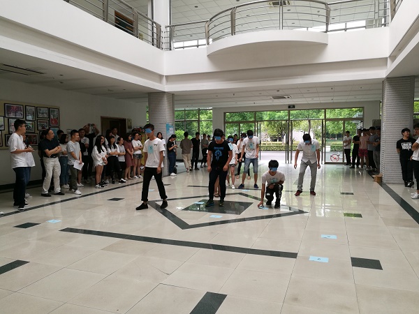 6月7日下午,学生活动中心大厅里不时传出欢声笑语,信工院的学生党员、入党积极分子们正在此开展一项“蒙眼摸号牌”的活动。原本非常简单的拾取对应号牌放到终点指定位置处的游戏,在游戏参与者被蒙上了眼罩之后就变得不那么简单和容易完成了。只见有的同学在“匍匐前进”中不断摸索地上的号牌、有的同学在“认清”了方向后,义无反顾的走去拿起了自以为正确的号牌、有的同学在拿到了正确的号牌后却走向了错误的终点方向、有的同学还因为被蒙眼而方向不明差点儿撞上柱子……参与游戏的同学们的各种表现,让旁观的同学们看的乐不可支。