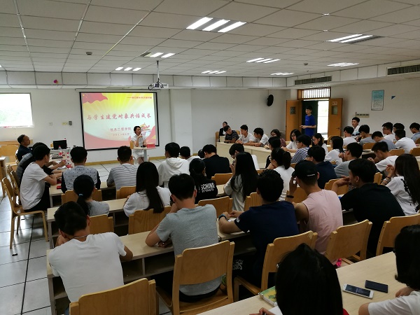 游戏活动结束后,信工院党总支随后在学活226开展了“与学生建党对象共话成长”活动。党总支副书记沈音乐作为主讲人,她首先请在座的同学们对刚才的游戏活动交流发言,“你参与/旁观了这个游戏,你有什么感受?”、“如果再让你玩一次这个游戏,你会怎么做?”无论是否参与了游戏,同学们都深有感触,有的说“游戏之前觉得很简单,但戴上了眼罩就失去了方向感,很迷茫,就随便选了一个能拿到的”、有的说“如果能有小组中那个不蒙眼的小伙伴的引导,我肯定会完成的更好”、还有的说“出发前要认清楚目标在哪里,然后赶紧出发避免和别人撞在一起”……在同学们的发言中,沈音乐副书记不时与同学们进行着交流。