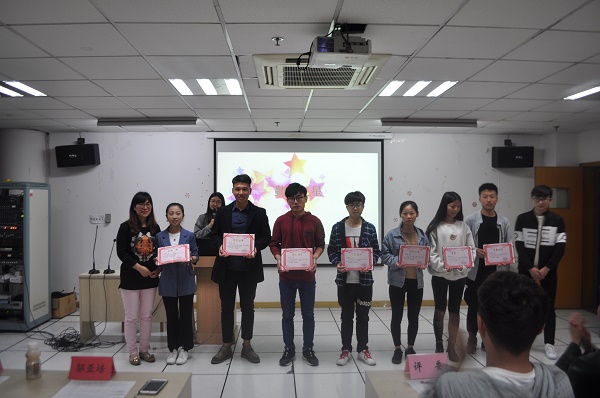会议首先由邬亚培老师介绍了此次勤工之星评比的背景和举办目的,并对同学们进行了“励志、强能、感恩、诚信”方面的教育,讲述了我校曾获得国家奖学金的优秀同学的先进事迹和信息工程学院获得“勤工之星”同学的先进事迹。同时,邬老师也指出了现在贫困生在学习、纪律和勤工助学等方面存在的问题。听了她的讲解,在做的同学们进一步明白了有目标、有追求、有自信的重要性,并且要通过诚信做事、诚实做人,用自己的优异成绩和行动感恩社会、感恩学校、感恩父母。随后由获奖的李明政同学向大家分享了在勤工助学中的心得体会。最后,由迈新社社长团为获奖同学颁奖并合影,整个颁奖仪式掌声不断,大家都向评上“勤工之星”的同学表示了衷心的祝福。