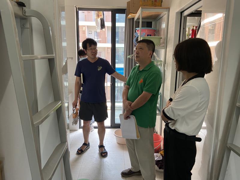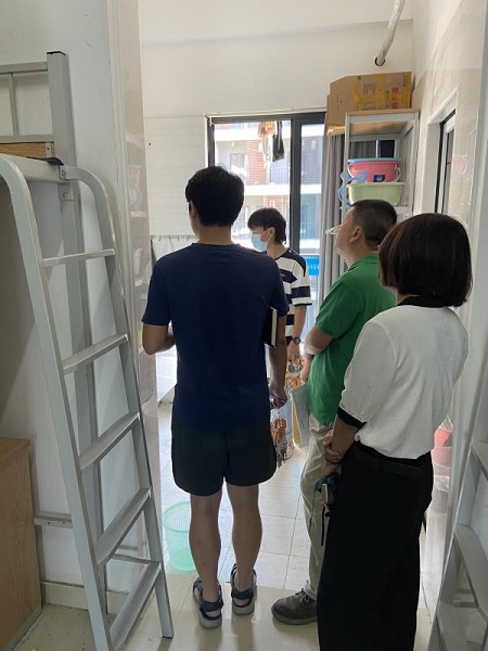 会后,谢川、陈超及学工办辅导员一行前往学生宿舍进行实地查看,详细了解学生的住宿情况。