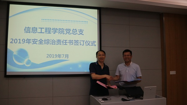 会议最后举行了2019年安全综治责任书签订仪式。院长陈云志代表分院与各专业、各部门的负责人签订了责任书,进一步明确了安全责任主体和综治安全目标,为打造平安校园进行安全工作的共建、共治、共享。