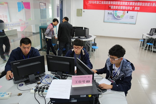 为了更好地传播信息安全知识,正确引导在校学生参加职业技能培训的态度和目标,积极地推动各地信息安全教学工作的发展。 4月9日,由浙江省教育厅主办,我校承办,杭州市计算机学会、神州数码网络技术有限公司协办的浙江省高职高专院校职业技能大赛暨全国选拔赛“2016信息安全管理与评估”竞赛项目圆满结落幕。本次大赛共有来自全省15个高职院校代表队的45名选手参加。竞赛主要考察参赛学生网络信息安全的实践技能。