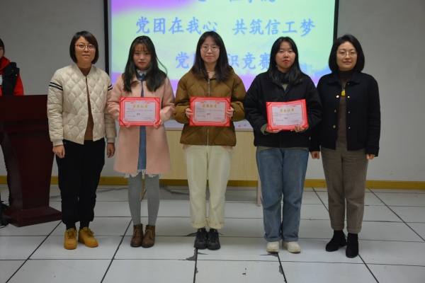 为进一步增进信工院学生对党团的认识,丰富理论知识,充实精神文化,12日7日晚6点,“党团在我心,共筑信工梦”信工院2020党团知识竞赛决赛在学生活动中心的决赛举行,从初赛中突围的8支队伍参赛,学院组织员郑蓓林、团总支负责人王璐瑜出席活动。
