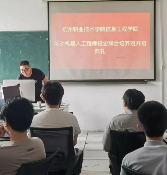 5月31日,信工院AMR移动机器人集成应用系统实施工程师订单班正式开班。来自大数据技术专业和信息安全与管理专业的共计15名学生进入该班进行为期一个月的岗前培训学习。学生在培训结束后,经过考核将正式走上企业工作岗位顶岗实习。信息工程学院陈云志院长在开班仪式上充分勉励了参训学生,同时也殷切期望同学们在企业师傅的带领下勤练本领,为后续高薪就业打下更为坚实的基础。