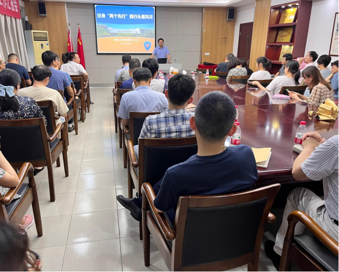 陈云志首先传达了学校中层干部会议精神。他希望,全体教职工要加强学习调研,认真领会省市党代会精神,积极贯彻职教发展政策,有序开展各项工作,常态化疫情防控,筑牢网络舆情和安全稳定的底线。随后,他总结了本学期的主要工作完成情况和标志性成果,对全体教职工的辛勤付出表示由衷感谢,并号召全体教职工锚定学校“双高建设”和“数智杭职·工匠摇篮”的发展目标,凝心聚力、主动作为,奋力书写分院高质量发展新篇章。最后,他对暑期教师培训、竞赛承办、社会考试、师生竞赛、“三个一”以及混合所有制改革等重点工作做出安排部署。