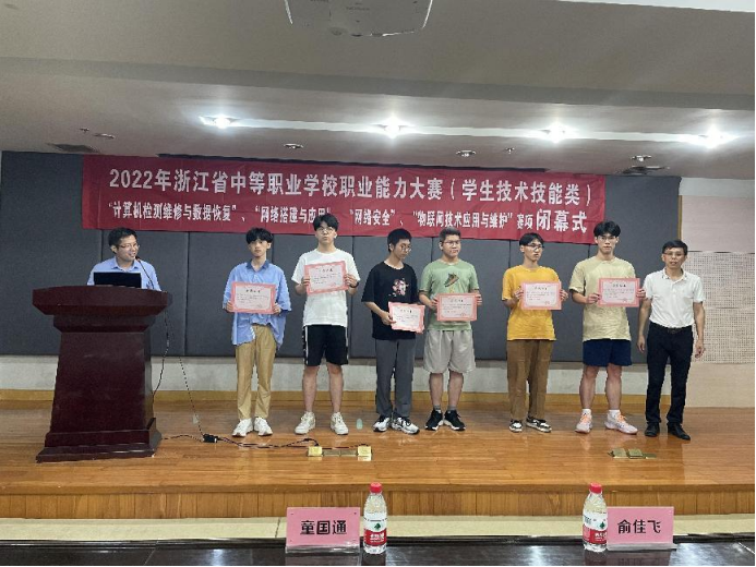 四个赛项共有来自全省10个地区63支队伍126名学生同台竞技,经过激烈角逐,产生一等奖6队、二等奖13队、三等奖19队。大赛期间,浙江省教育厅职成教处主任崔陵、教研员俞佳飞亲临比赛现场,看望慰问大赛评委、工作人员、参赛学校带队领导和师生。