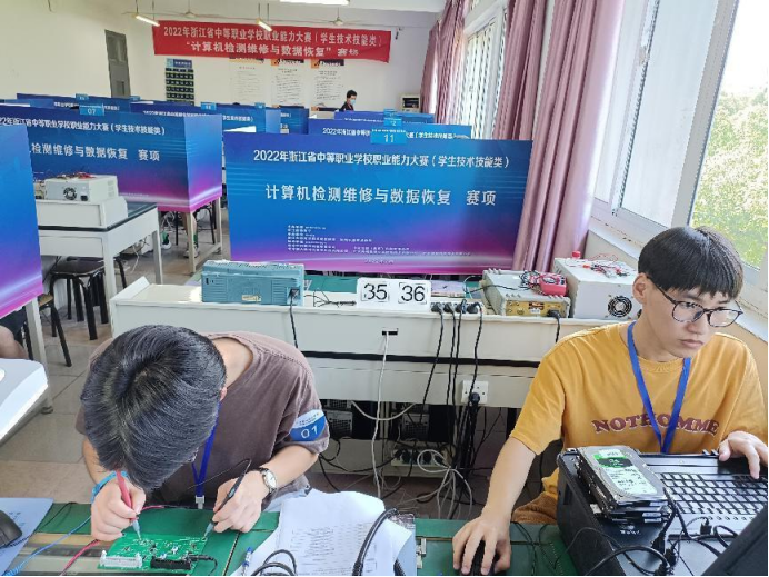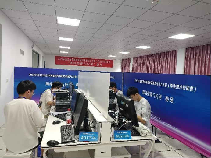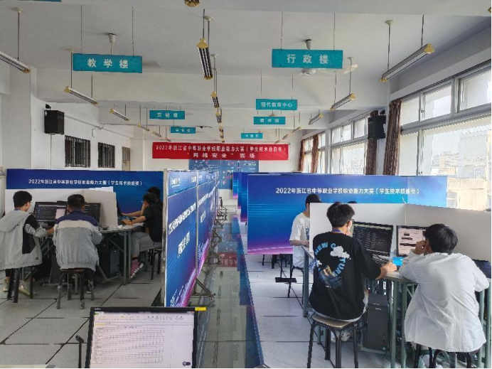 7月8日至9日,2022年浙江省中等职业学校职业能力大赛“计算机检测维修与数据恢复”、“网络搭建与应用”、“网络安全”、“ 物联网技术应用与维护”四个赛项在我校信息工程学院圆满落幕。本次大赛由浙江省教育厅主办,教育厅职成教教研室、杭州职业技术学院承办,中科磐云(北京)科技有限公司、中盈创信(北京)科技有限公司、北京新大陆时代教育科技有限公司、北京神州数码云科信息技术有限公司、杭州安恒信息技术有限公司协办。来自高职院校、行业、企业的专家担任裁判。