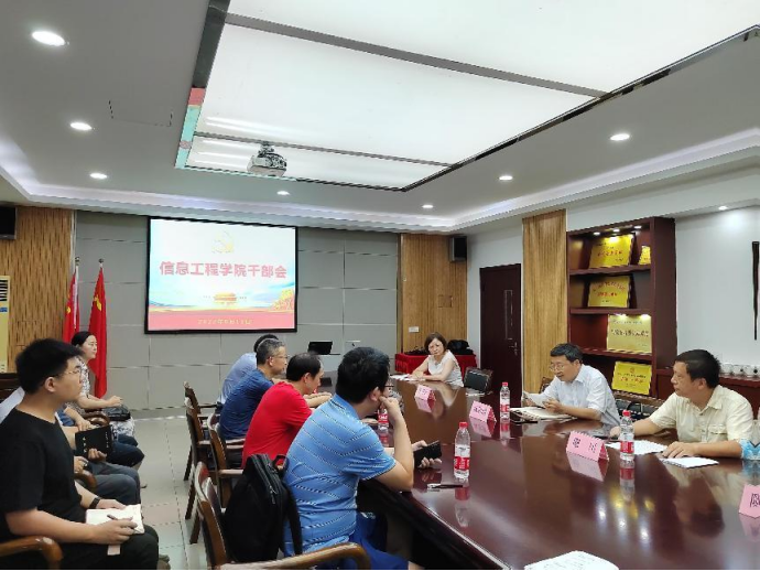 8月11日,信息工程学院在分院会议室召开全体干部大会,欢迎林海平同志到分院任职,欢送刘杰同志前往学校职能部门任职。校党委委员、组织部长麻朝晖出席会议。分院领导班子成员、中层以上干部参加了会议。会议由党总支书记谢川主持。
