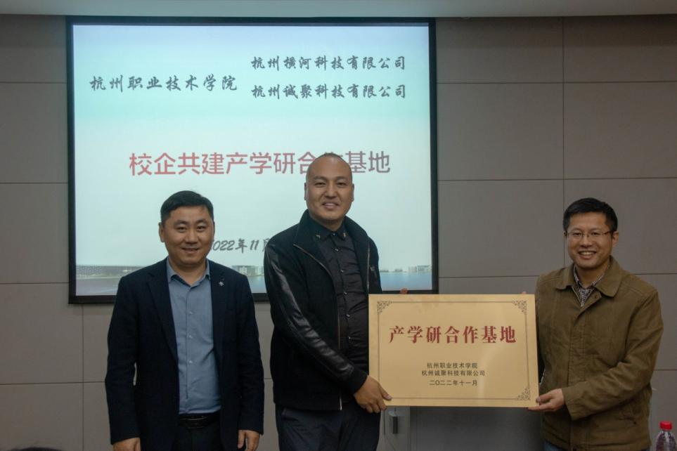 11月23日,在杭州职业技术学院信息工程学院会议室举行了产学研合作基地授牌仪式。杭州横河科技有限公司屠鑫银总经理、杭州诚聚科技有限公司胡磊总经理、杭州职业技术学院教务处许普乐副处长、应雅璐科长、信息工程学院陈云志院长、林海平副院长、专业负责人和教师代表参加了此次会议。