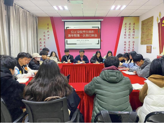 奋楫笃行启新程,踵事增华谋新篇。为确保新学期信工学院团学工作能够平稳、有序、高效地进行,2月23日晚,信工学院学生组织召开新学期第一次部门例会。团总支指导老师毛海棁和学生组织全体学生干部参加。