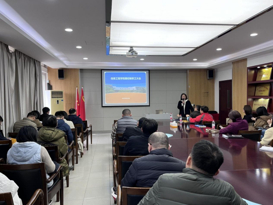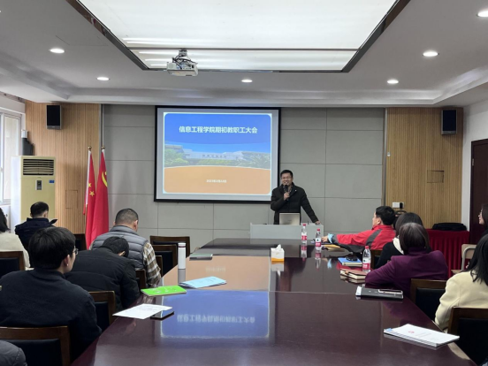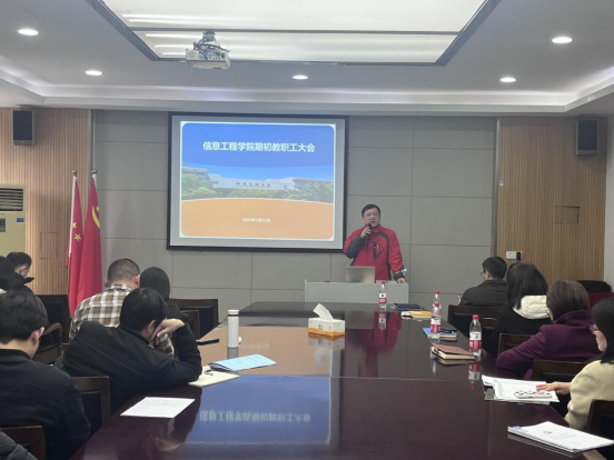 为进一步凝聚力量、谋划新篇,保证新学期各项工作有序开展,2月22日下午,信息工程学院在分院会议室召开期初教职工大会。信息工程学院院长、副书记陈云志,党总支书记、副院长谢川,党总支副书记、副院长陈超,副院长林海平以及全体教职工参加会议,会议由陈超主持。