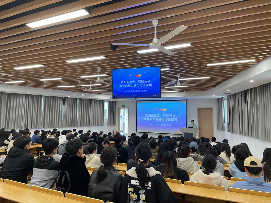 杭州亚运会、亚残运会的脚步越来越近,为推进杭州亚运会、亚残运会赛会志愿者培训工作,提升志愿者的志愿服务水平。信工学院于3月20日下午在5201智慧教室开展亚运会志愿者通用培训,近200名亚运会志愿者参加本次培训。