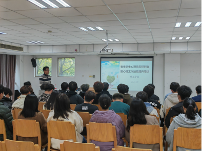 在初步了解完各班的心理整体状况后,揭江明确了学生骨干在大学生心理健康工作的定位,突出了学生干部纽带和桥梁的作用,鼓励大家在帮助同学的过程中,收获心理调试技能,增强个人效能感。