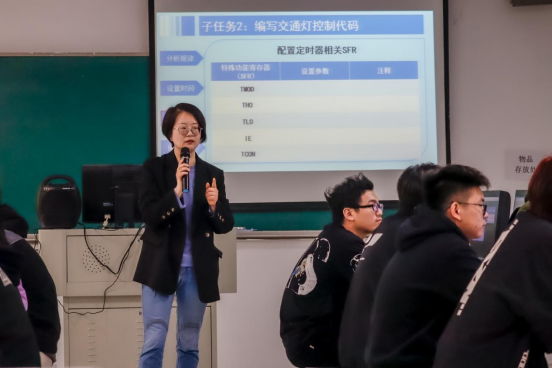本次公开课由信息工程学院物联网应用技术专业彭斐副教授主讲,授课内容为《单片机技术与应用》课程中的“交通灯控制系统设计”。教学设计以追溯技术发展为开端,从而导出任务背景,融入思政元素,明确任务目标;基于情境模拟,解锁电路原理;透过电路功能演示,剖析电路运行的底层逻辑;采用问题导向,梳理程序设计思路;以学习任务为导向,互动讨论为线索,循序渐进地实施电路绘图、程序编写及功能调试等工作任务,真正落实“做中学,学中做”的一体化教学模式,提升课堂质量和教学效果。