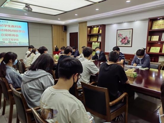 本次书记学生面对面暨师德师风问题整治意见听询会,加强了师生之间的沟通交流,营造了相互尊重、相互理解、相互信任的氛围,是信息工程学院师德师风建设以及校园文化建设的一次重要探索。