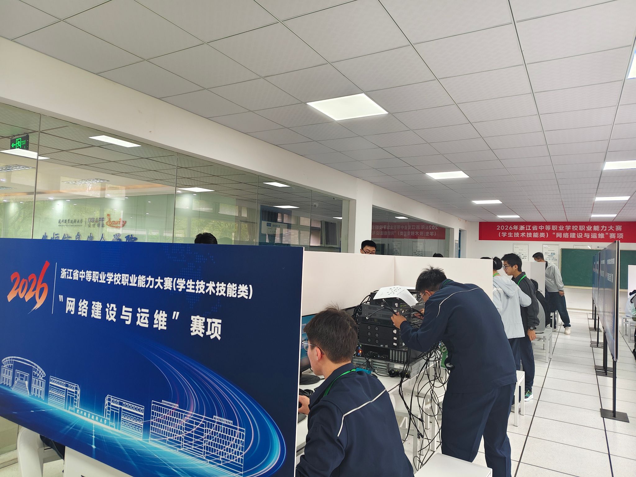 4月10日至12日,2026年浙江省中等职业学校职业能力大赛(学生技术技能类)“网络建设与运维”和“数字产品检测与维护”赛项在我校圆满落幕。本次大赛由浙江省职业院校技能大赛组织委员会主办,浙江省教育厅职成教教研室、杭州职业技术大学承办。来自高职院校、行业、企业的专家担任裁判。
