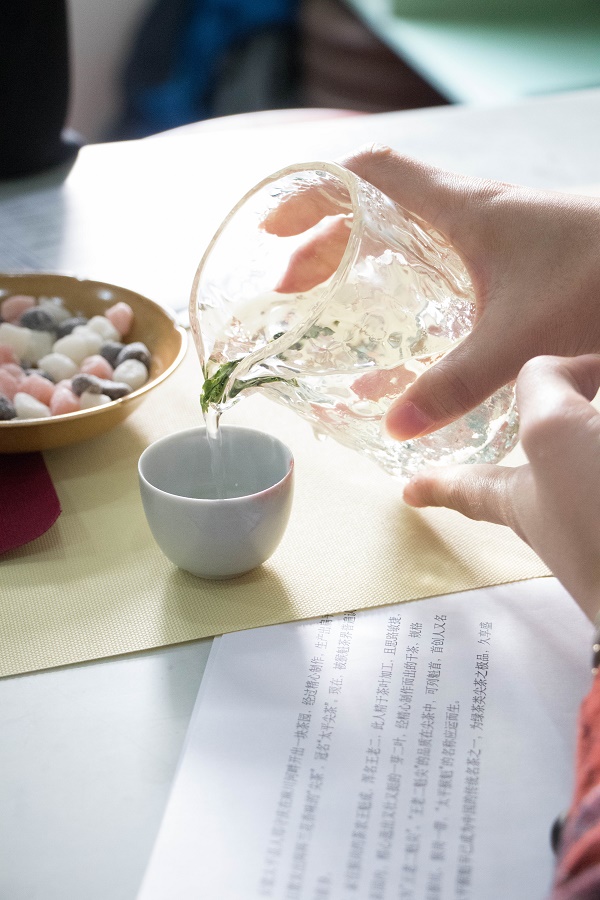 随着三声木鱼和舒缓的音乐,本次的信茗室沙龙正式开始。“品”在于静心,同学们伴随着音乐,逐渐进入茶的世界。主讲人瑾宧老师向同学们依次介绍了太平猴魁、中国红和安化十两茶,使参与同学大致对绿茶、红茶、黑茶的性格进行基础了解。同学们认真品茶并记录对茶的感受,用味觉来向大自然呈上最高的敬意。绿茶能清新养生,对抽烟的人有格外的好处;红茶以其干茶乌黑卷曲的一面呈现于同学们的面前,乌黑墨绿的颜色仿佛厚涵着无尽的深意;黑茶色深棕味苦,暗示同学们人生并不是只有甘甜,还有更多的考验。