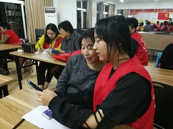 在这个现代电子信息飞速发展的时代,“小红帽”们坚持在周末去给社区的老人们传授计算机以及手机的基础知识,这次来现场的竟然清一色的都是已退休的阿姨们。活动中,“小红帽”非常热情的为她们讲解智能手机基本用法,阿姨们也听得非常认真,时常提出些问题。伴随着“小红帽”们一次次耐心的讲解和阿姨们津津有味的学习,夜色慢慢涌上窗头,尽管窗外寒风瑟瑟,但是这里的每一个人在温馨的氛围中全心投入,这便是“小红帽”所追求的快乐吧——让身边的人因你的存在而幸福。
