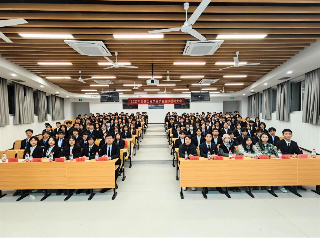 11月24日晚,信息工程学院2023届学生组织授聘大会在5201教室举行。信工学院团总支负责人毛海棁、信工学院学生组织成长导师王璐瑜以及2022届、2023届学生组织全体成员参加此次大会。