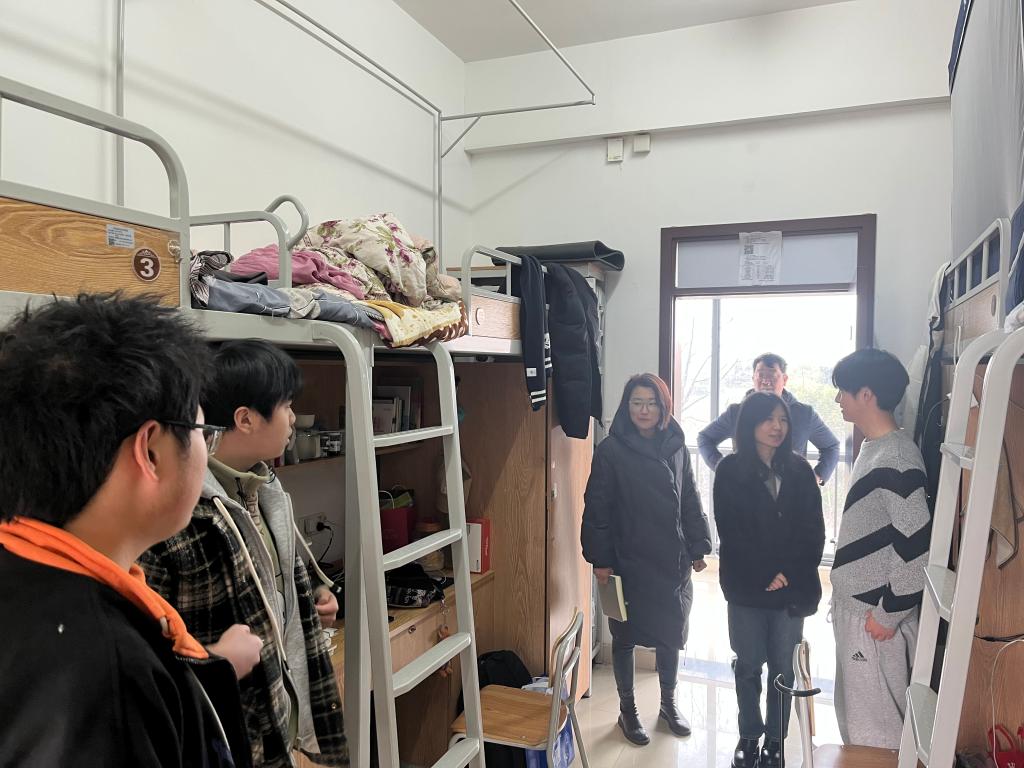 3月1日下午,信息工程学院党总支副书记、副院长陈超,学工办主任章春军以及辅导员沈宸洁、上官方京一行来到学生宿舍,走访看望返校学生,抽查辅导员宿舍。
