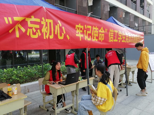 为扎实开展“不忘初心、牢记使命”主题教育,在信息工程学院党总支的组织下,10月30日,近20名信工院学生党员和入党积极分子们在新学生公寓楼下广场开展了义务检修电脑、预防电信诈骗宣传的志愿服务活动。