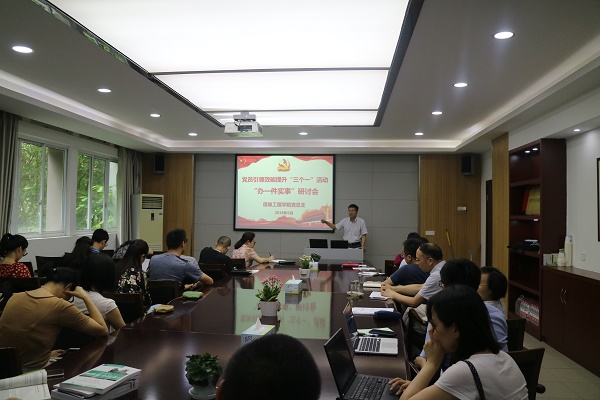 5月30日,信工院党总支在分院会议室召开2018年党员引领效能提升“三个一”活动之“办好一件实事”研讨会。信工院全体教师党员参加会议,分管教学工作的副院长郝阜平应邀出席了会议,会议由党总支副书记沈音乐主持。