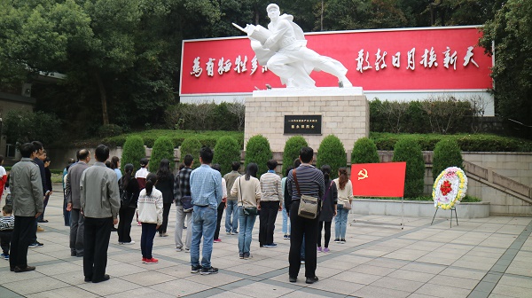 在庄严的国歌声中,党员代表向烈士们敬献花圈,全体党员向烈士纪念碑三鞠躬并默哀,悼念革命先辈们为中国人民获得和平、自由、幸福生活不惜牺牲生命的伟大壮举。随后,党员同志们进入展馆,以时间为主线,依次参观了中国共产党的创立和第一次大革命时期、土地革命时期、抗日战争时期、解放战争时期、社会主义革命和社会主义建设时期时那些在杭州地区发生的大事,以及杭州籍的英烈们为了国家的解放和人民的幸福而不惜抛洒热血、乃至牺牲生命的壮烈事迹。他们英勇无畏、舍生取义的气概震撼了在场的每一位党员。