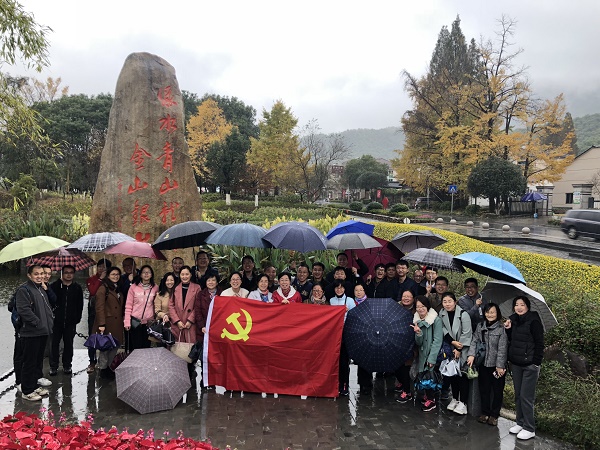 为深入贯彻习近平新时代中国特色社会主义思想和 “绿水青山就是金山银山”新理论,11月18日,信息工程学院党总支组织全体党员赴“两山”理论发源地——安吉余村参观学习。冒着细密的雨丝走进安吉余村,抬眼满目青山叠翠,薄雾缭绕,荷塘残叶听雨,清溪绕村而下,入眼皆是美景。谁曾想到,十多年前,这里曾是尘沙遍地的“穷山恶水”景象。党员们参观了余村党建文化广场、文化礼堂等重点场所,观看了“坚定‘两山’路,奋进新时代”专题纪录片,感慨着余村面貌的焕然一新,感悟着余村人坚持人与自然和谐共生,以生态旅游、生态农业实现经济发展与生态保护双赢的发展之路。